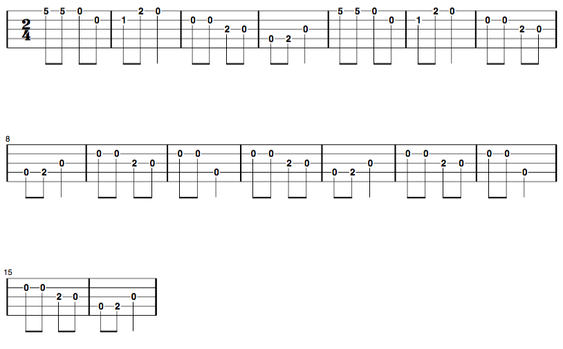 The Jim Panky version, like most, is embellished with various rolls, making it tricky to pick out the actual melody. The following tab seems to be clean and simple: