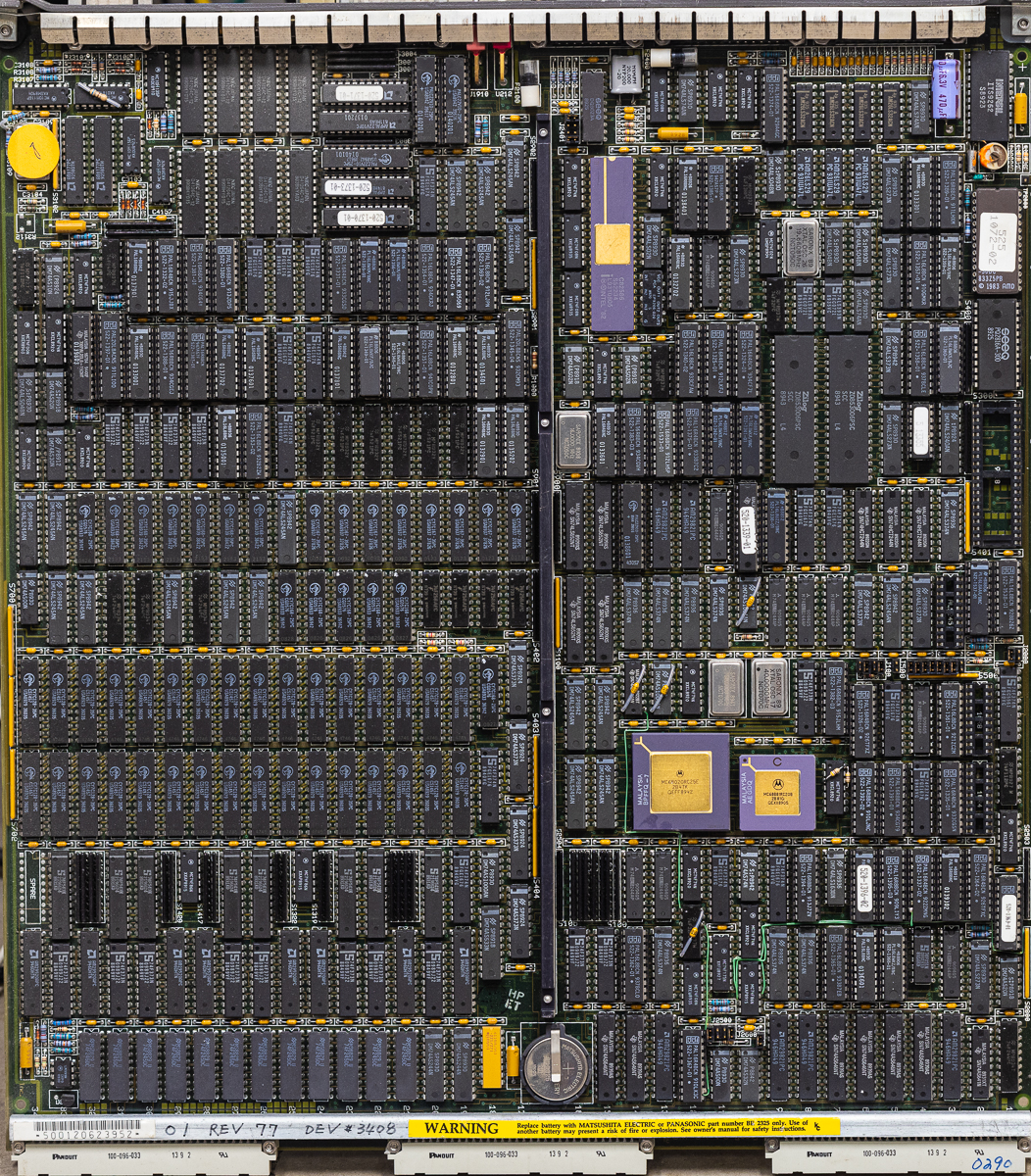 The board is 14.5 by 16.5 inches in size. This is one of the giant 9U VME boards that Sun was fond of in this era.
